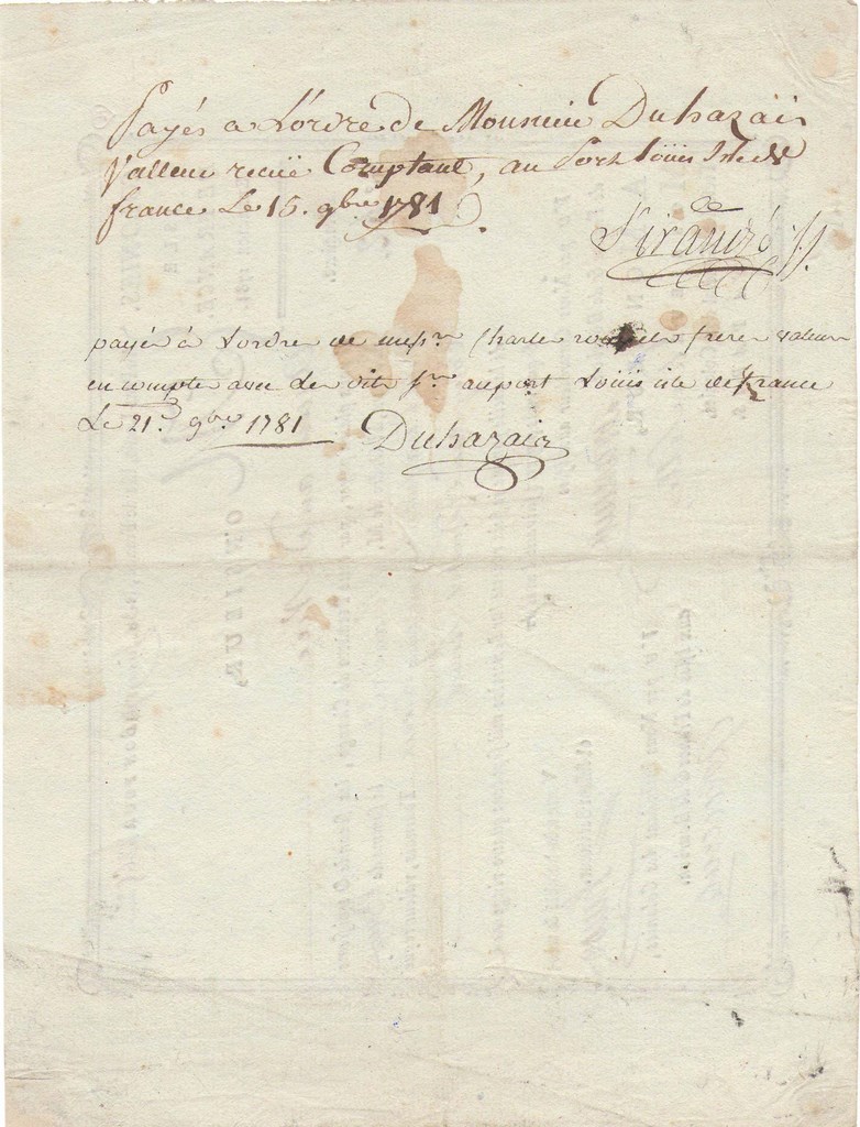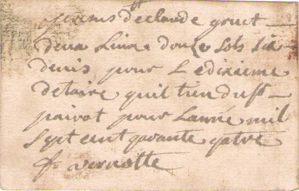 Hélas aucune de ses cartes nous est parvenue à nos jours. L’utilisation du dos des cartes à jouer, sera reprise ultérieurement en métropole sous la révolution, à cause de la non stabilité de la valeur des assignats.